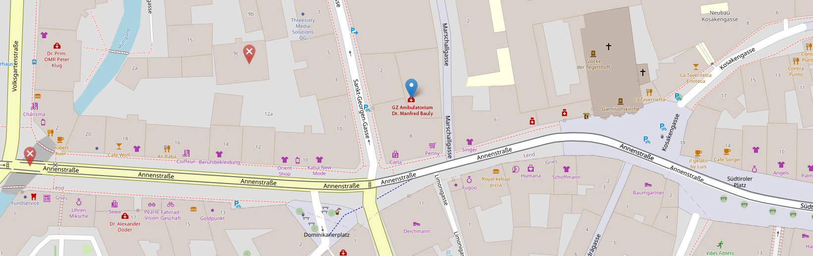 Den Eingang GZ & Ordination Dr. Manfred Bauly finden Sie in der St.Georgengasse